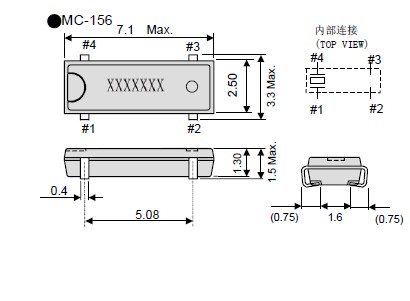 電話機表晶MC-156,石英水晶振子,石英晶體諧振器,“MC-156 32.7680KA-A0:ROHS”表晶32.768KHZ系列晶振,7.1*3.3mm貼片小尺寸晶振,超小型,薄型,質地輕的表面貼片音叉型晶體諧振器,手機晶體,產品體積小,特別適用于各種小巧的便攜式消費電子數(shù)碼產品,在移動通信領域得到了廣泛的應用,晶振產品本身可發(fā)揮優(yōu)良的電氣特性,滿足無鉛焊接的高溫回流溫度曲線要求.