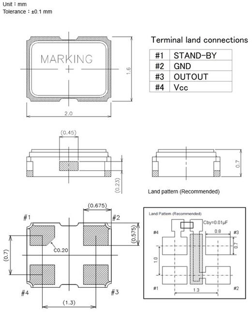 | (長×寬×高) | - | 2.0 × 1.6 × 0.7 | 毫米 | ||