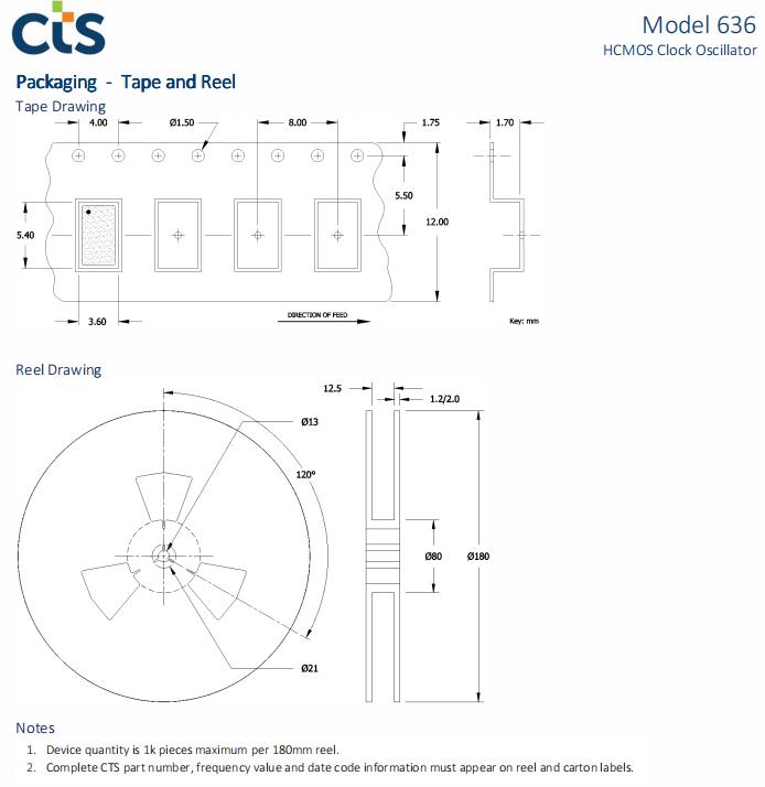 | 636M3C008M00000 | CTS振蕩器 | 636 | 8MHz | ±50ppm |