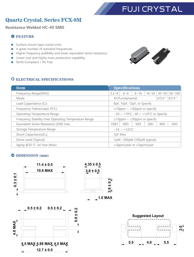 | Remoteble | RT400 | HC-49SMD-2 | FCX-9M | 12 MHz |