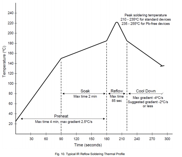 4.IPC/JEDEC文件J-STD-020C提供了適用于錫鉛和無鉛的回流曲線