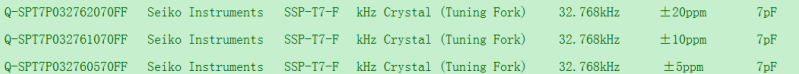 精工晶振Q-SPT7P032762070FF ,Q-SPT7P032761070FF ,Q-SPT7P032760570FF三款編碼區(qū)別參數(shù)