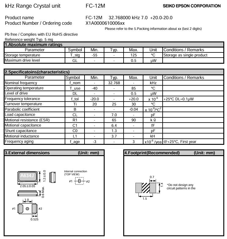 X1A0000610006 FC-12M 2012 32.768K 7PF愛普生晶振注意事項