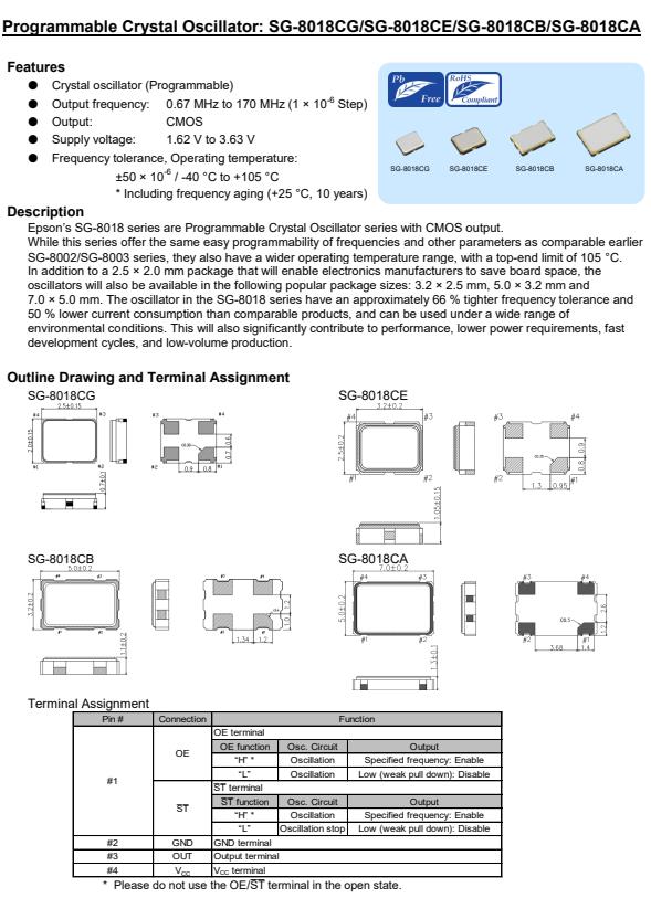 | X1G005571018500 | SG-8018CA | 48.000000 MHz | 7.00 x 5.00 x 1.40 mm | CMOS | 1.620 to 3.630 V | -40 to 105 °C |