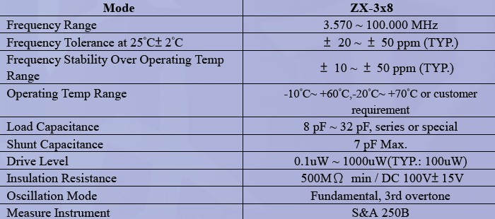 晶振規格: