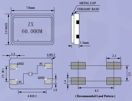 貼片晶振,石英晶振ZX-7050,石英晶體諧振器